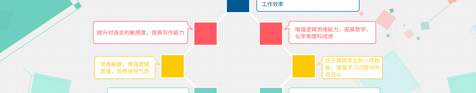 训练能力:表达能力、思维理解力、空间想象力、自信心